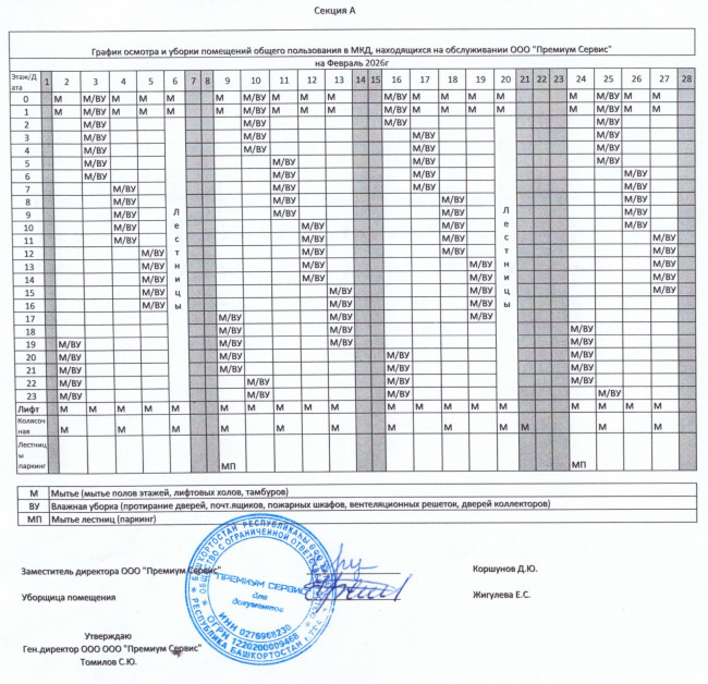 График уборки секция А февраль 2026г.