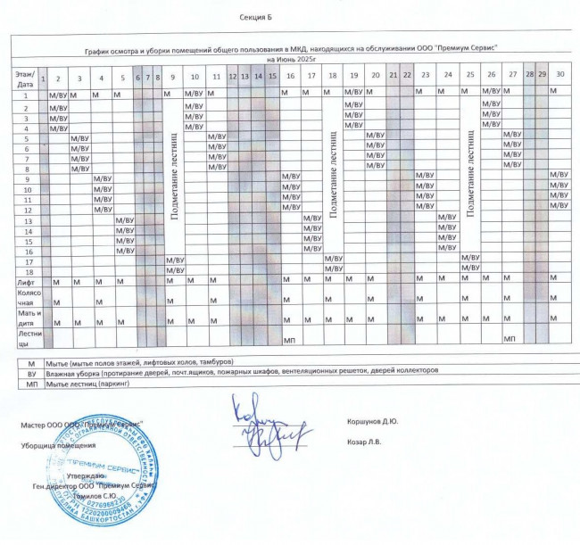 График уборки секция Б июнь 2025г
