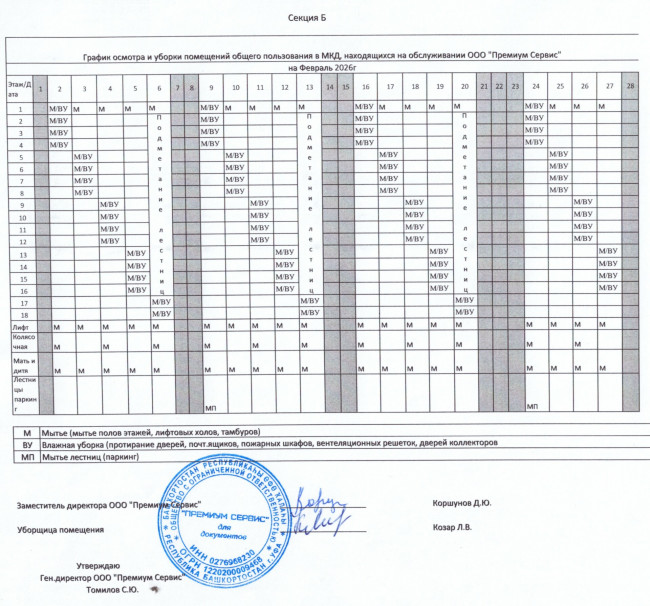 График уборки секция Б февраль 2026г.