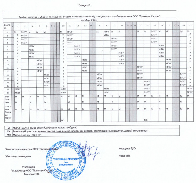 График уборки секция Б март 2026г.