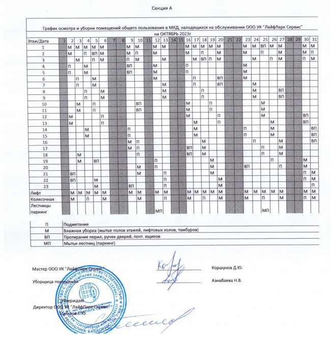 График уборки секция А октябрь