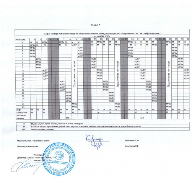График уборки секция А ноябрь