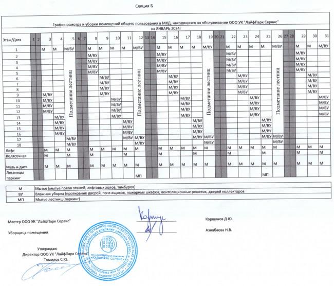График уборки секция Б январь 2024г