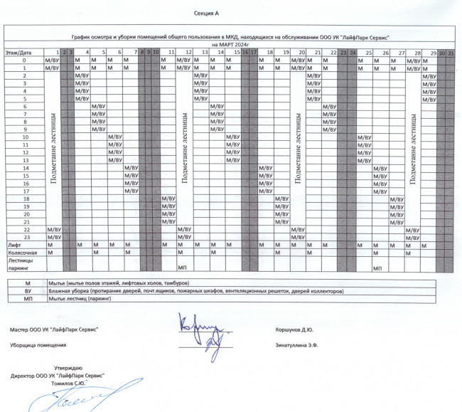 График уборки секция А март 2024г