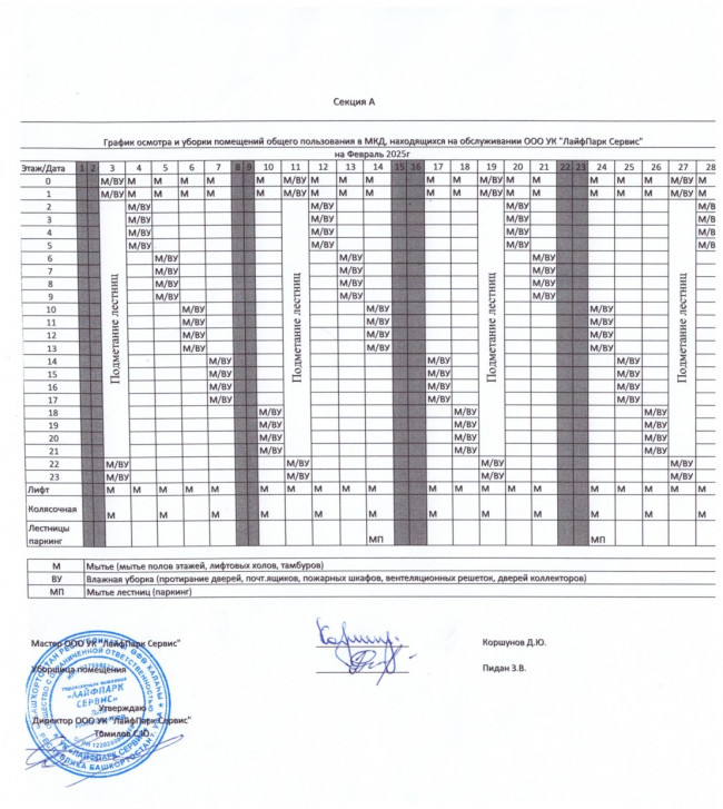 График уборки секция А февраль 2025г